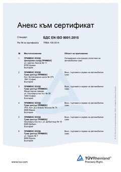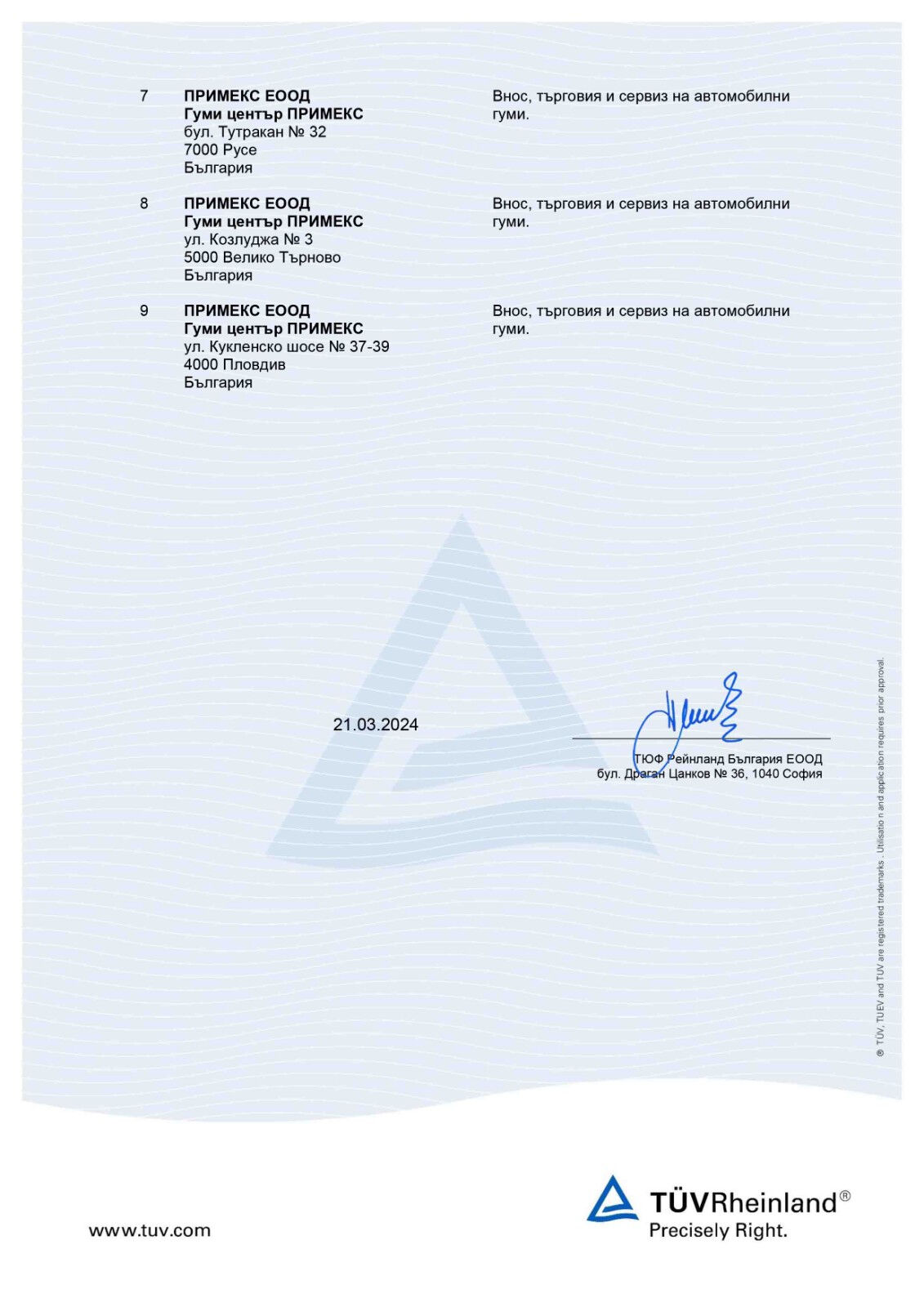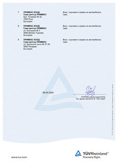 Модерните търговски и сервизни центрове на Примекс са в цялата страна – два в София, Пловдив, Варна, Шумен, Бургас, Русе, Велико Търново и Добрич. Днес Примекс разчита не само на търговска дейност, но и на широка гама от сервизни услуги за леки и лекотоварни автомобили – регулиране на преден и заден мост, преглед ходова част, ремонти по окачването, регулиране на фарове, смяна на масла и др. Сервизите са оборудвани с последно поколение специализирана техника и инструменти и в тях работят висококвалифицирани професионалисти.