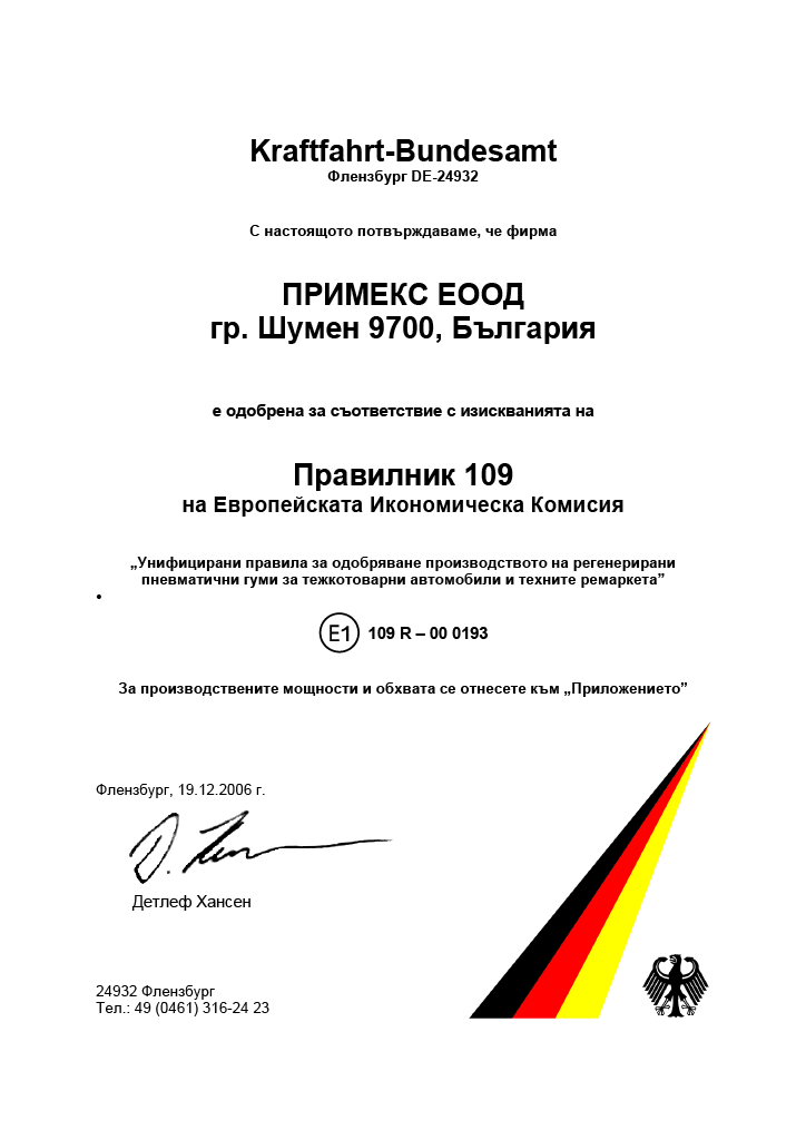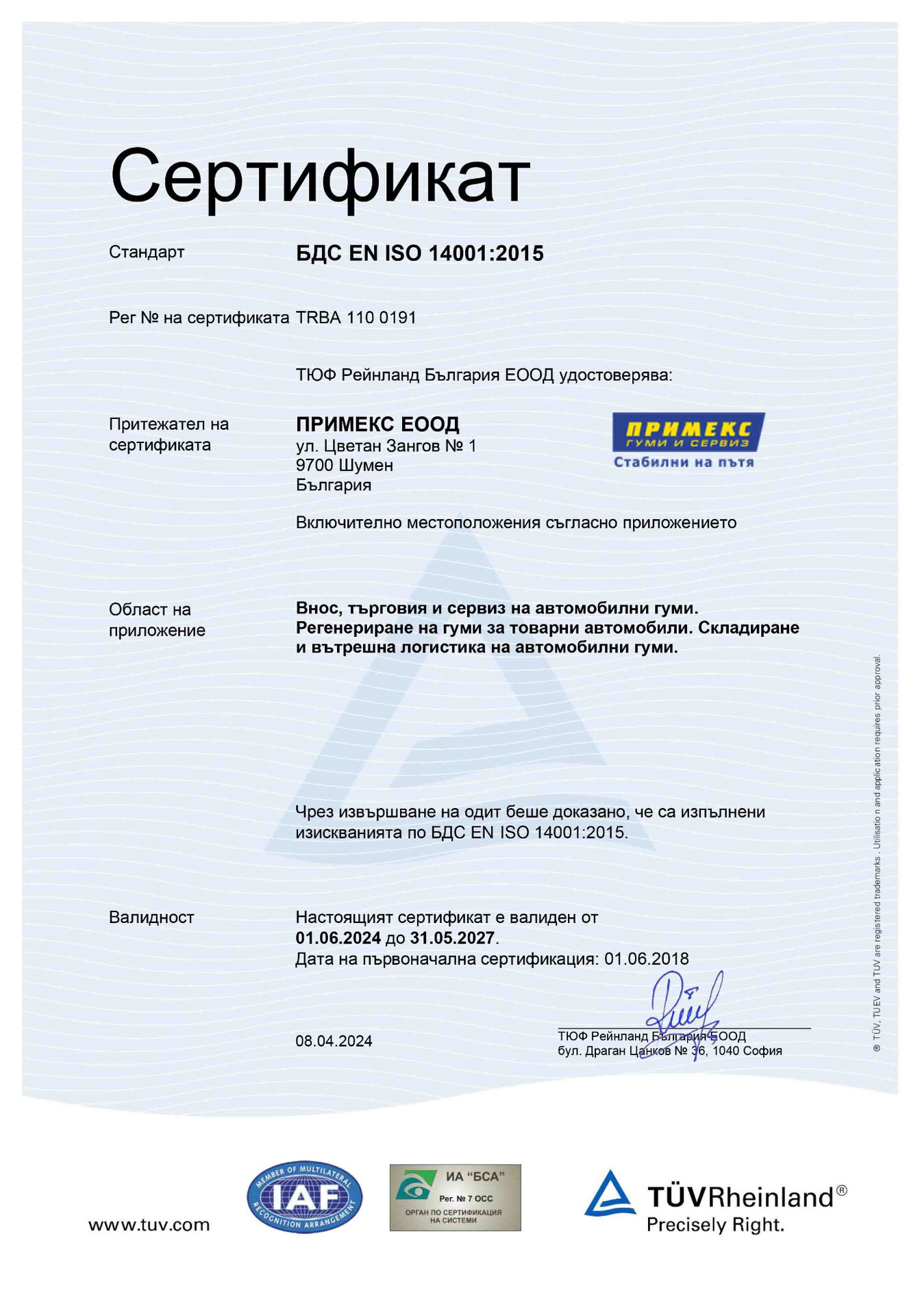 Компанията Примекс е създадена през 1997 год. в гр. Шумен с основен предмет на дейност внос и търговия с автомобилни гуми. Днес Примекс е лидер на българския пазар в областта на вноса и дистрибуцията на всякакъв вид гуми за леки и товарни автомобили, автобуси, селскостопанска, строителна, индустриална и специализирана техника. Компанията се радва на доверието и лоялността на своите клиенти, както и на голямо международно признание от страна на своите партньори - световноизвестни производители като Goodyear, Michelin, Pirelli, Hankook, Matador, Petlas и др.